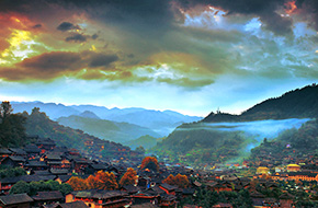 早餐后,前往游览西江千户苗寨(含固定表演,含电瓶车,游览2H,挂牌价:120元),西江千户苗寨是全国**大的苗寨,有近千户之称,依山而建的村寨现牛角形状,在此还可欣赏具有特色的苗寨歌舞。这里居住的是苗族西氏支系。苗寨以青石板路串连,枫树成林,枫香扑鼻。是凯里周围规模**大的苗寨,约有1000多户人家,所以称为“千户苗寨”。这里的房屋大多是木吊脚楼,都是用枫木搭成,依山势向两边展开,暗红色的枫木板壁在夕阳照射下一片金黄;游毕返回贵阳。