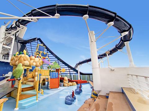 (4)以下的船上设施须由未成年人的父母或监护人(需持有以上已经签署的规定文件) 陪同前往,并在现场监护:攀岩墙、Studio B(真冰溜冰场:客人需要穿着长裤和袜子方可参加溜冰活动)、高空滑索、模拟冲浪、水上乐园、直排轮滑道等(部分邮轮不含以上设施)。