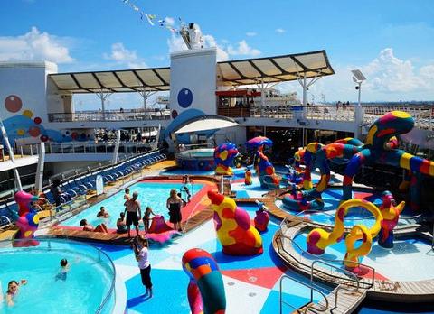 (4)以下的船上设施须由未成年人的父母或监护人(需持有以上已经签署的规定文件) 陪同前往,并在现场监护:攀岩墙、Studio B(真冰溜冰场:客人需要穿着长裤和袜子方可参加溜冰活动)、高空滑索、模拟冲浪、水上乐园、直排轮滑道等(部分邮轮不含以上设施)。