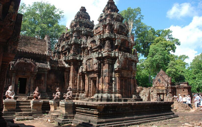 【吴哥窟】又称小吴哥,是世界上规模最大的宗教建筑。也是吴哥古迹中保存最完好的建筑,作为柬埔寨的标志被印在国旗上。它规模宏大、完美对称、浮雕精美,体现了高棉古典建筑艺术的高峰。